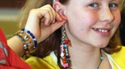 Wil je lekker creatief bezig zijn, schrijf je dan nu in! Want in deze workshop maak je met verschillende technieken wel drie leuke ontwerpen.Met speciale tangetjes en metaal- en visdraad maak je een sieraad voor aan je tas of mobieltje. Je rijgt ook een ketting met hanger van gekleurd metaalkoord en knijpkralen. En met naald en draad borduur je een broche met verschillende lagen gekleurd vilt. Natuurlijk gebruiken we overal de mooiste stoffen, gekleurde kralen en pailletten. De laatste les gebruiken we om een echte expositie samen te stellen. Zo kan iedereen jullie creaties bewonderen.Deze workshop is mogelijk als naschoolse activiteit of als project tijdens schooltijd.(Klik op een foto voor een vergroting.)